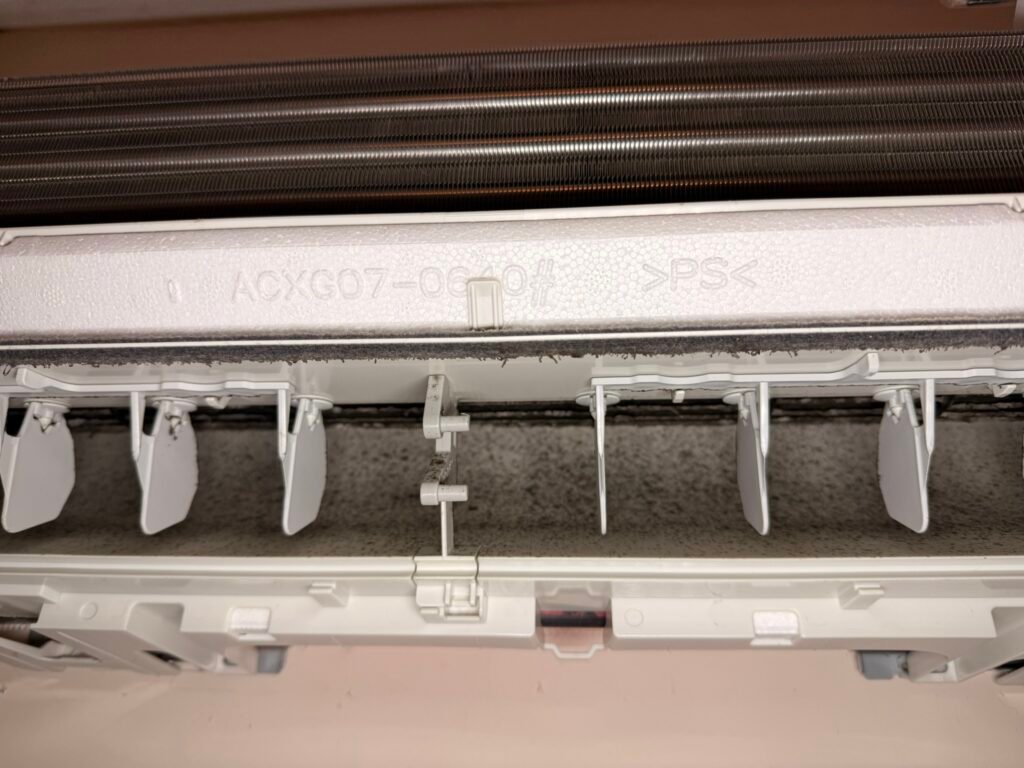 Une fois l’accès sécurisé, le constat a été sans surprise : cette climatisation n’avait jamais été nettoyée.